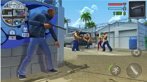 Gangs Town Story has a typical origin story: players seek to build a gang and gradually take control of a large criminal empire. The open world is extremely modern but also full of crime; players can see gang wars or car chases anywhere.